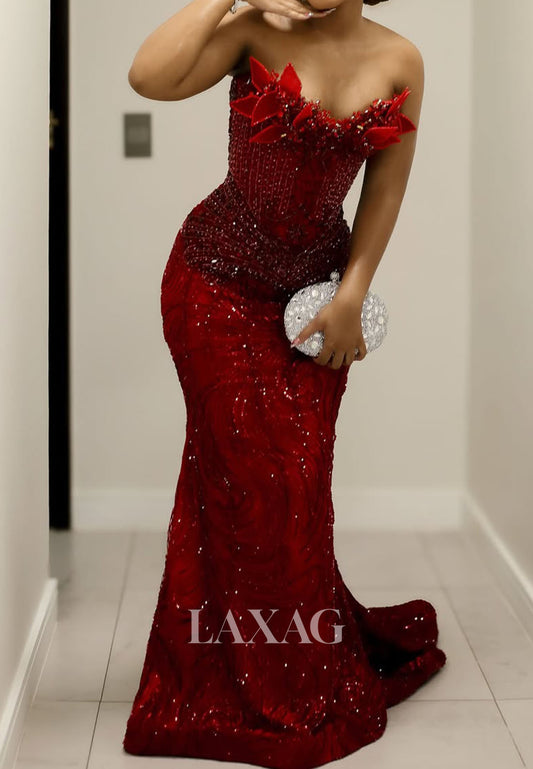 Sweetheart Sleeveless Mermaid Evening Dress Fully Sequined Beaded Tulle Pleated Prom Gowns