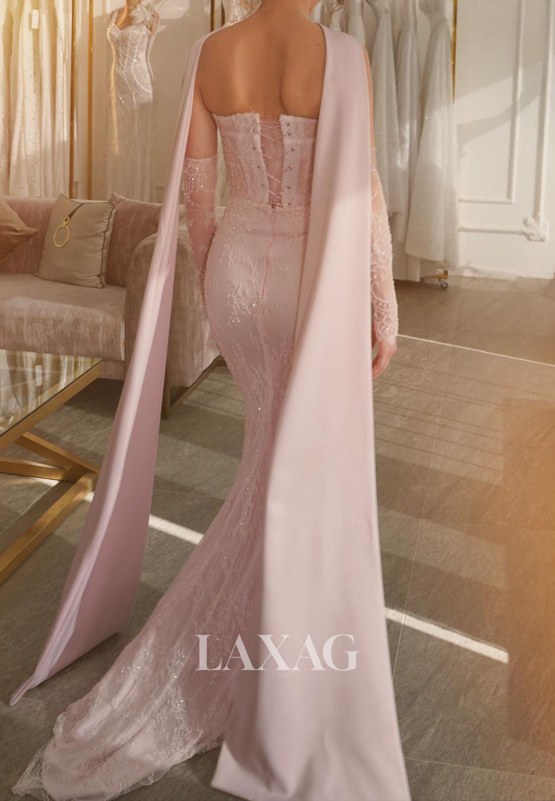 Scoop-Neck Off-Shoulder Prom Gowns Sleeveless Sequined Lace Applique Mermaid Evening Dress