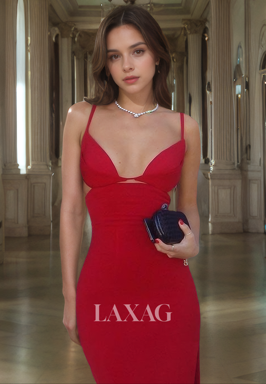 Spaghetti Straps Cutout Sleek Satin Mermaid Party Prom Formal Evening Dress