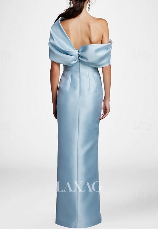 Off-Shoulder Asymmetrical-Neck Sleeveless Satin Pleated Floor-Length Mermaid Evening Dress
