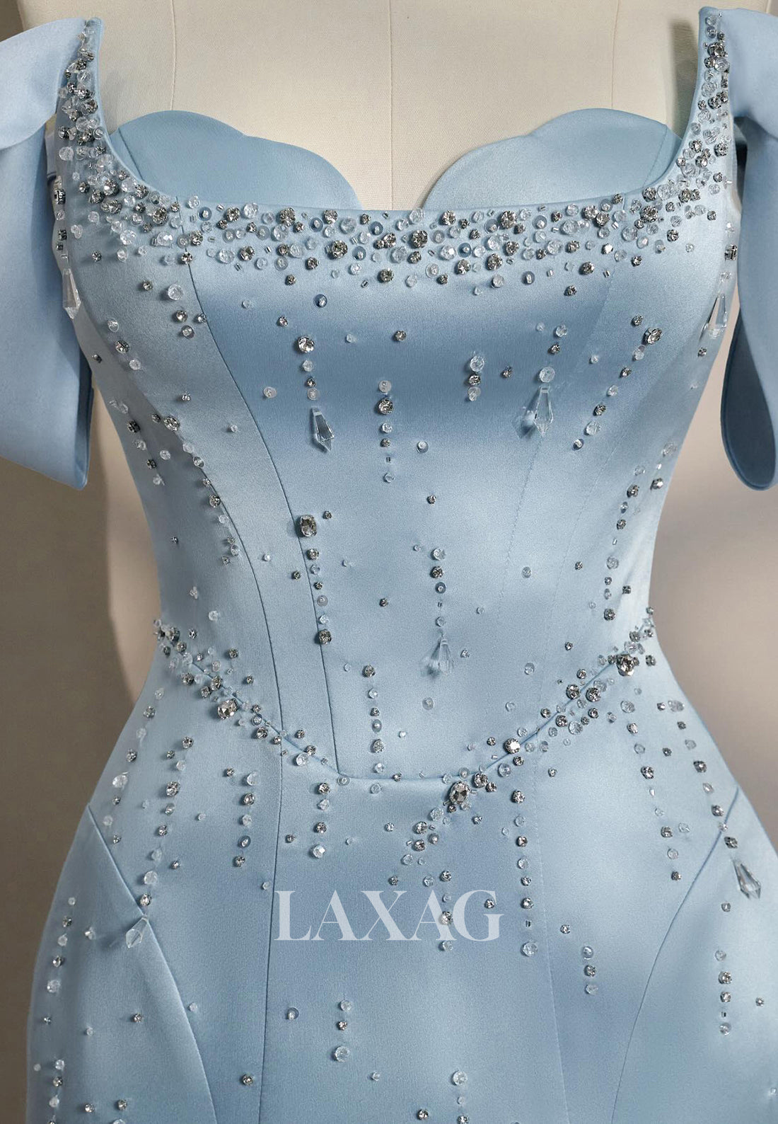 Sweetheart Sleeveless Satin Floor-Length Formal Gowns Off-Shoulder Beaded Mermaid Evening Dress