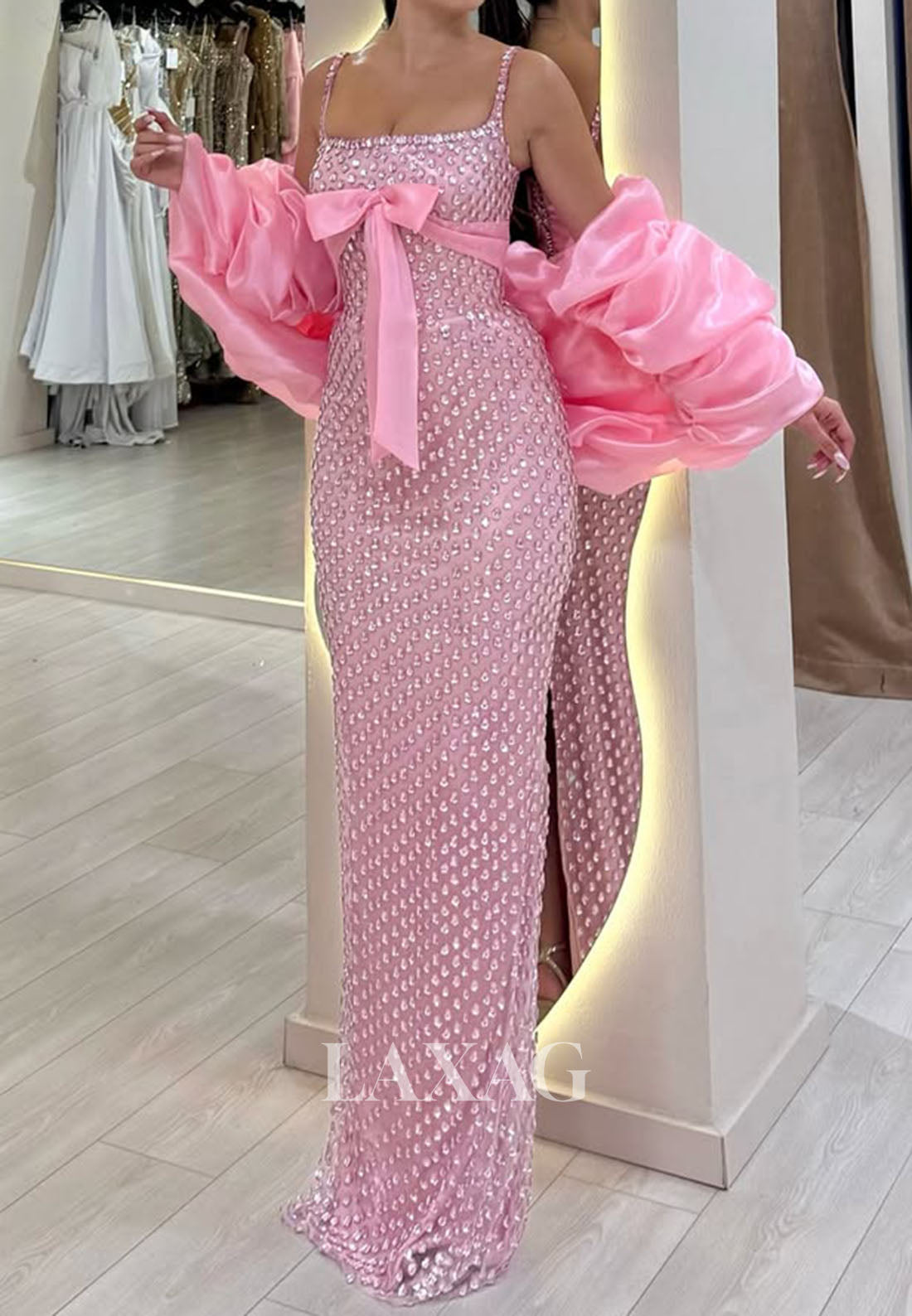 Square-Neck Sleeveless Mermaid Prom Dress Spaghetti Straps Fully Rhinestone Party Gowns