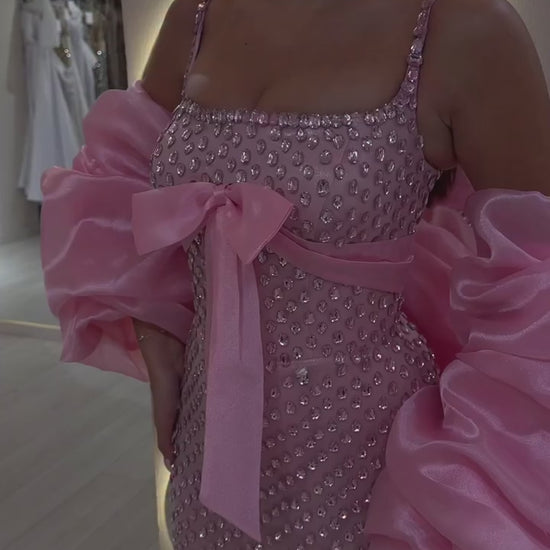 Make a stunning entrance in this show-stopping mermaid prom dress. The elegant square neckline and delicate spaghetti straps create a sophisticated silhouette, while the sleeveless design keeps you cool and comfortable all night. Covered entirely in shimmering rhinestones, this gown catches every light as you move, ensuring all eyes are on you. The fitted mermaid cut hugs your curves beautifully before flowing into an elegant train, perfect for creating those unforgettable red-carpet moments. Whether it's prom, a formal gala, or a special celebration, this radiant party gown delivers the glamour and confidence you deserve.