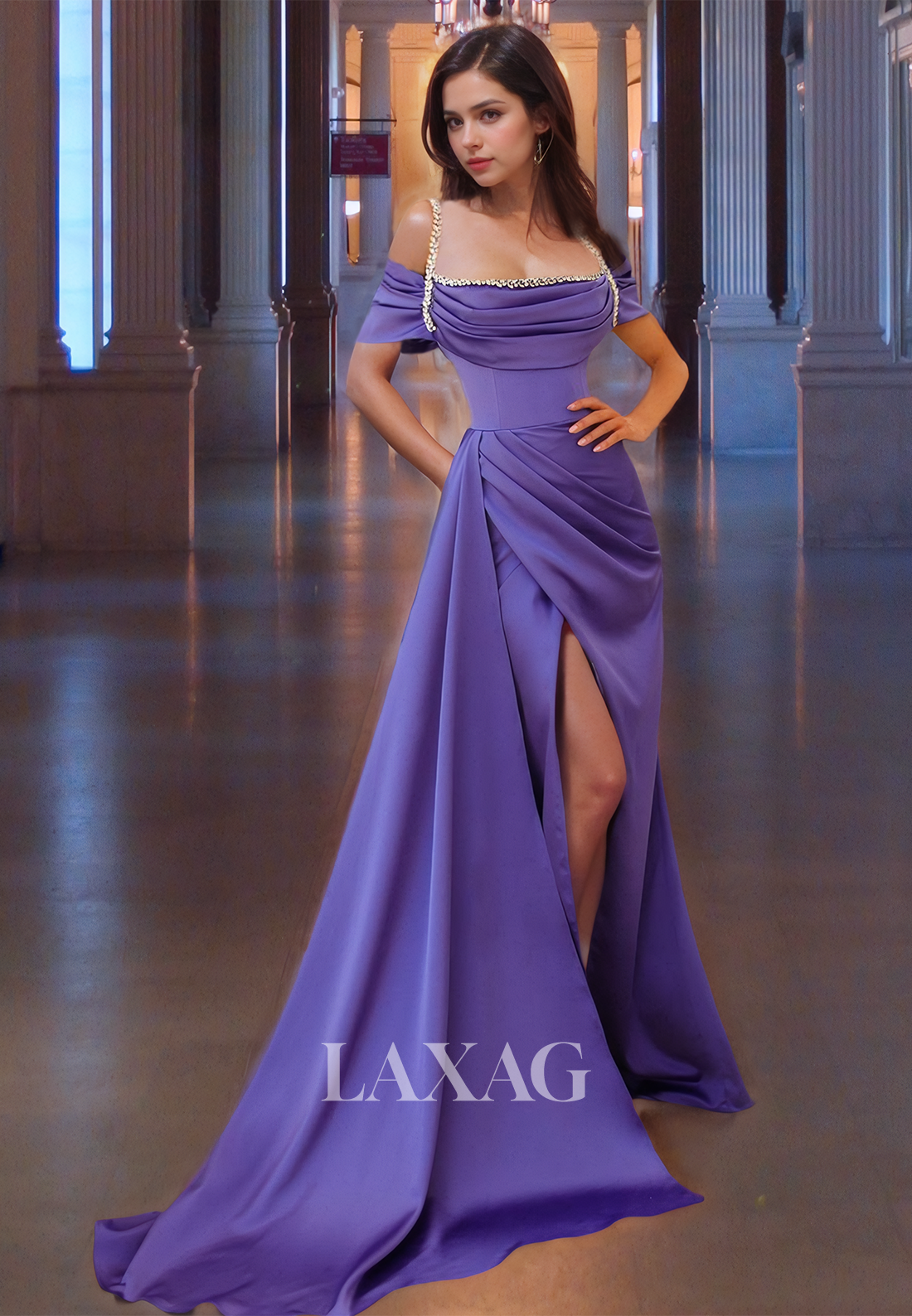 Spaghetti Straps with Beaded Sweetheart Formal Party Gowns Sleeveless Pleated Fitted Prom Dress