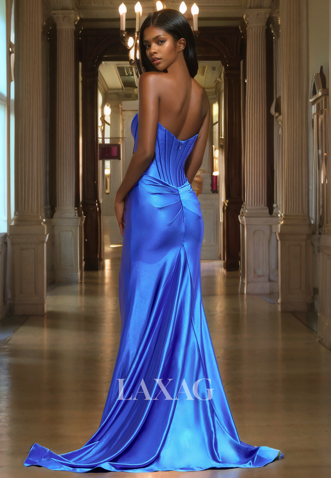 Sleeveless Sweetheart Off-Shoulder Evening Dress Beaded Pleated Slit Sweep Train Mermaid Prom Dress