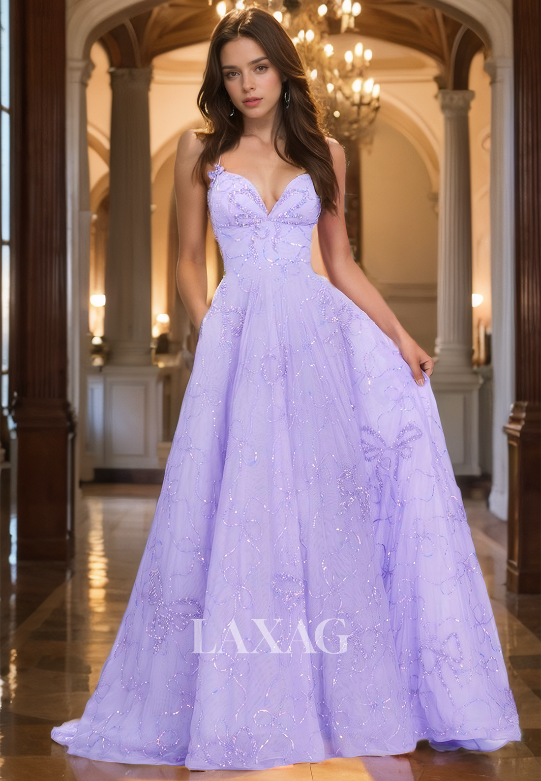 Be a showstopper in this elegant Sweetheart Prom Dress with an A-Line silhouette. The pleated lace applique, off-shoulder sleeves, and spaghetti straps add a touch of romance while the train adds drama. Perfect for prom or any special occasion.