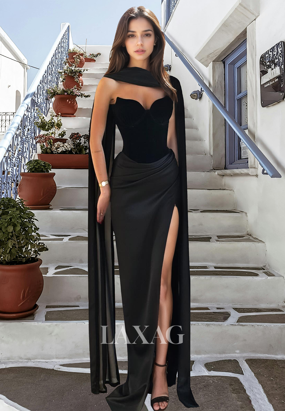 Off-Shoulder Sleeveless Pleated Evening Gowns Sweetheart Floor-Length High Slit Fitted Prom Dress