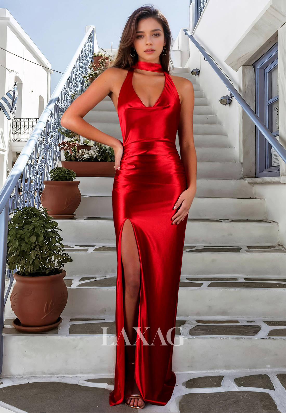 Elevate your formal attire with our Halter Deep V-Neck Off-Shoulder Sleeveless Evening Gowns. This stunning dress features a pleated, floor-length mermaid design that will flatter your figure. Perfect for prom or any special occasion, this dress exudes elegance and sophistication.