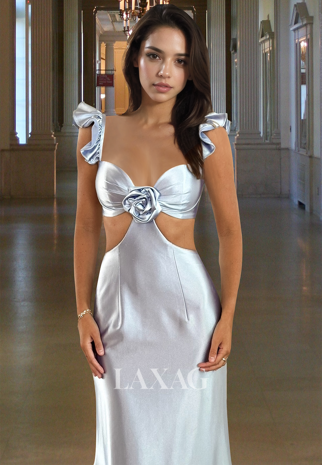 Ruffled Spaghetti Straps Sweetheart Sleeveless Fitted Prom Dress Pleated Floral Embossed Party Gowns