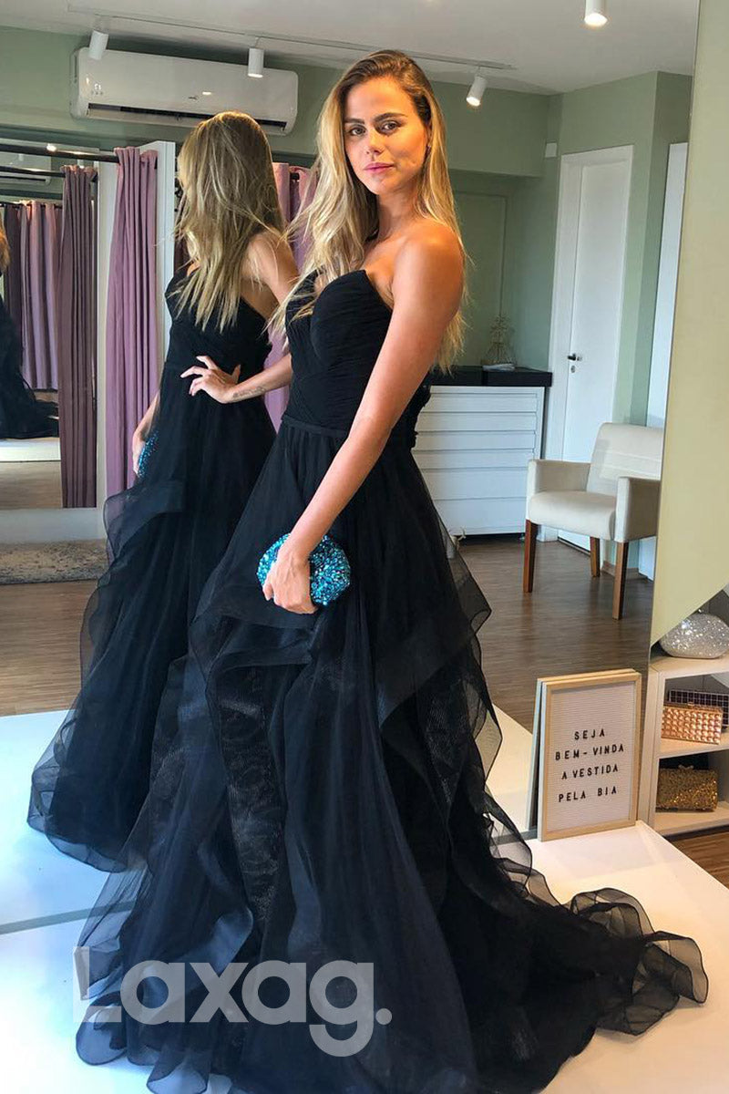 16725 - Plunging V-neck Black Tulle A-line Formal Dress