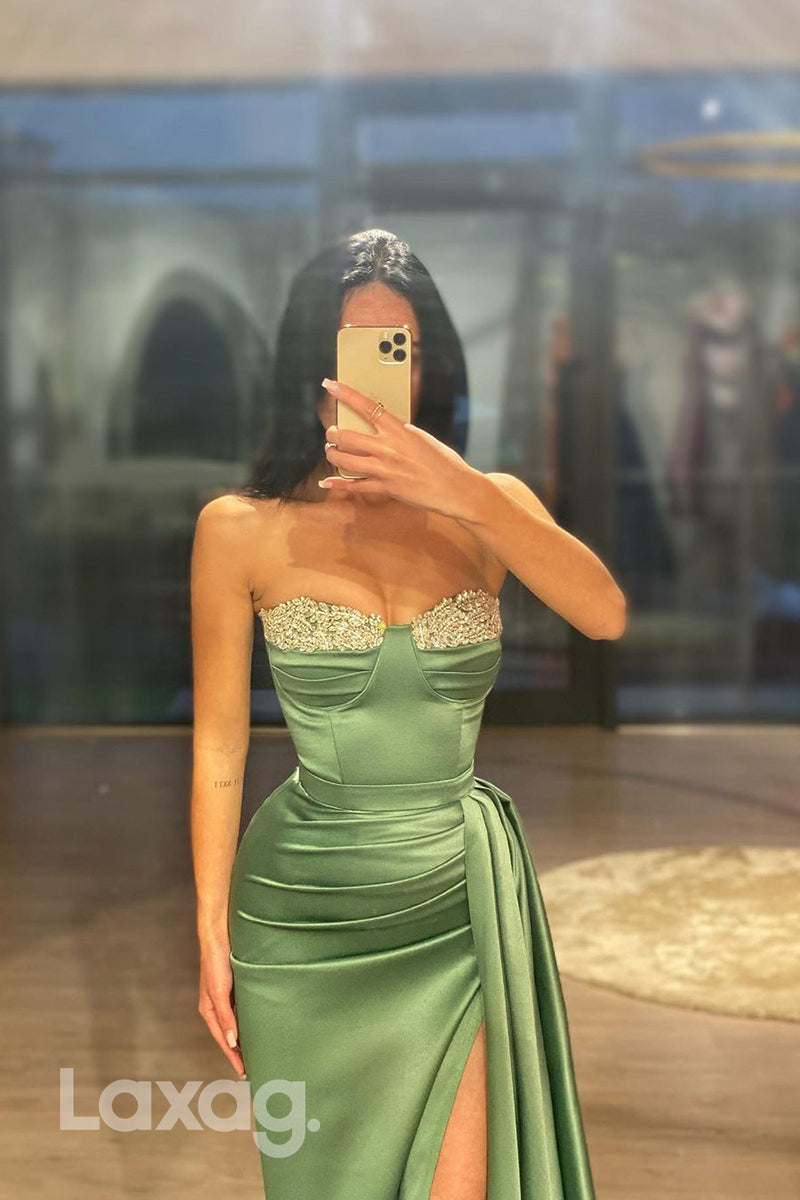 Sheath/Column Sweetheart Ruched Long Semi Formal Prom Dress with Slit