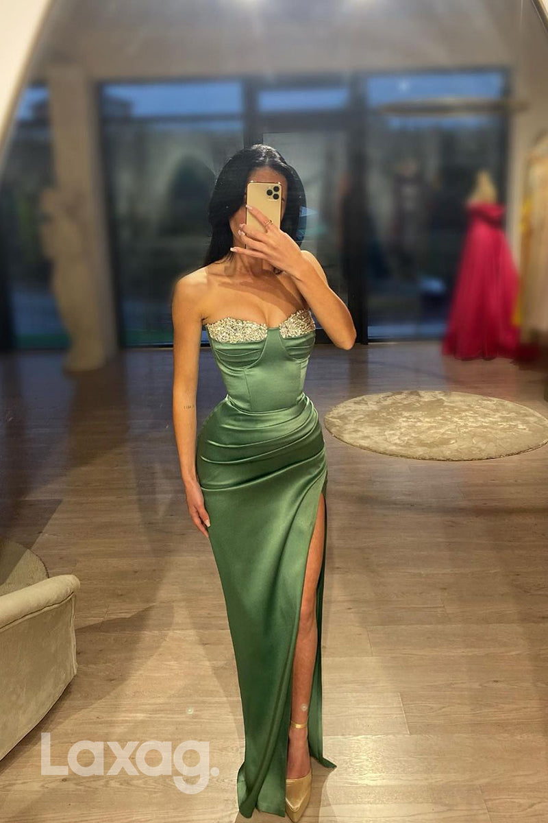 16802 - Sheath/Column Sweetheart Ruched Long Semi Formal Prom Dress with Slit
