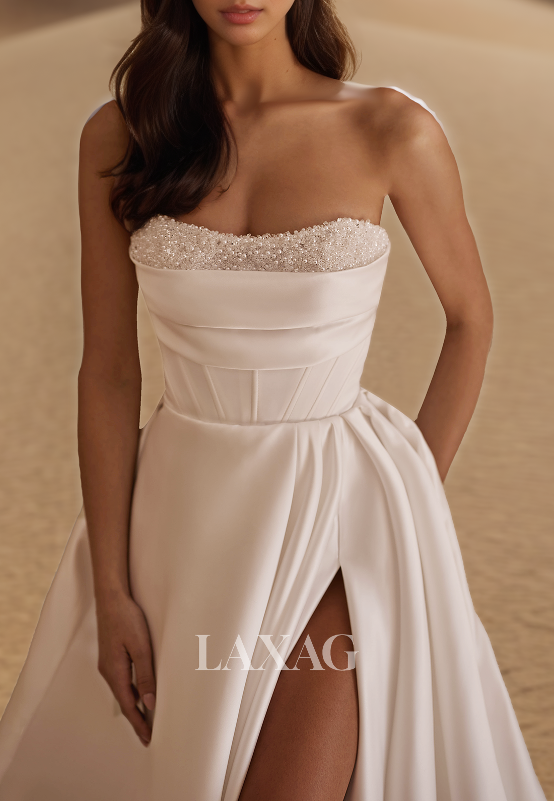 Sweetheart Off-Shoulder Long-Sleeves A-Line Wedding Dress Beaded Sequined Pleated Bride Gowns