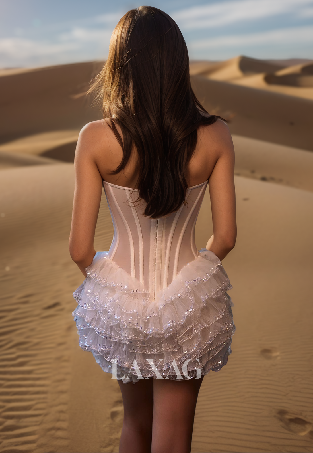 Sweetheart Beaded Sequined Mermaid Wedding Dress Sleeveless Tiered Beach Short Bride Gowns