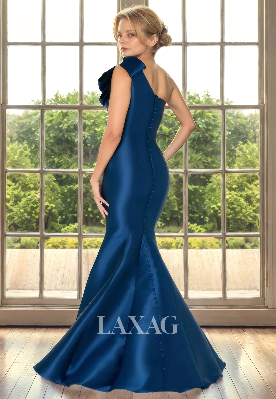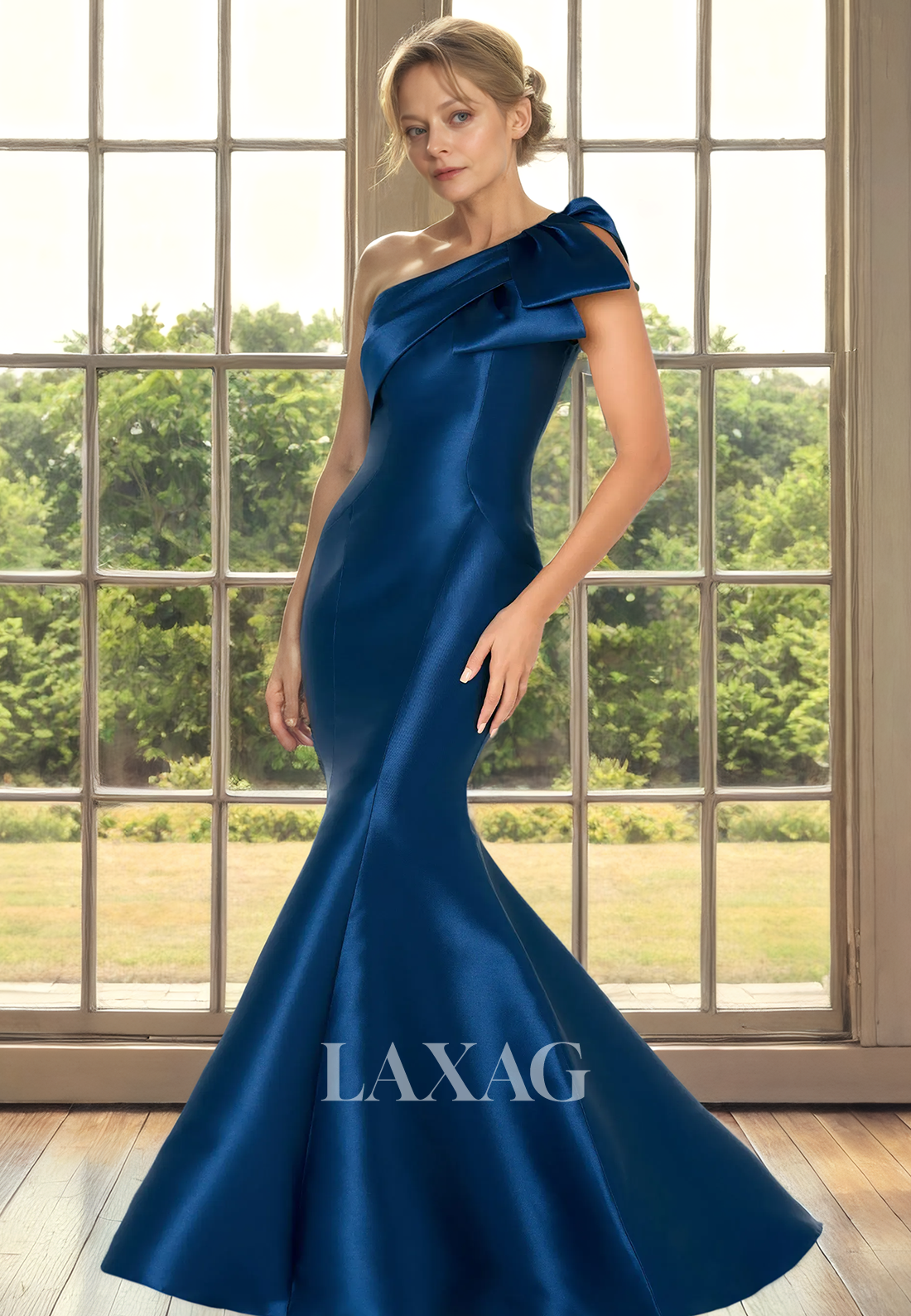 One Shoulder Pleated Sleek Satin Elegant Mermaid Mother of the Bride Dress