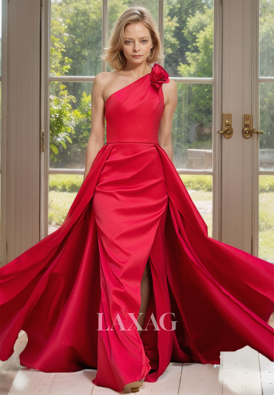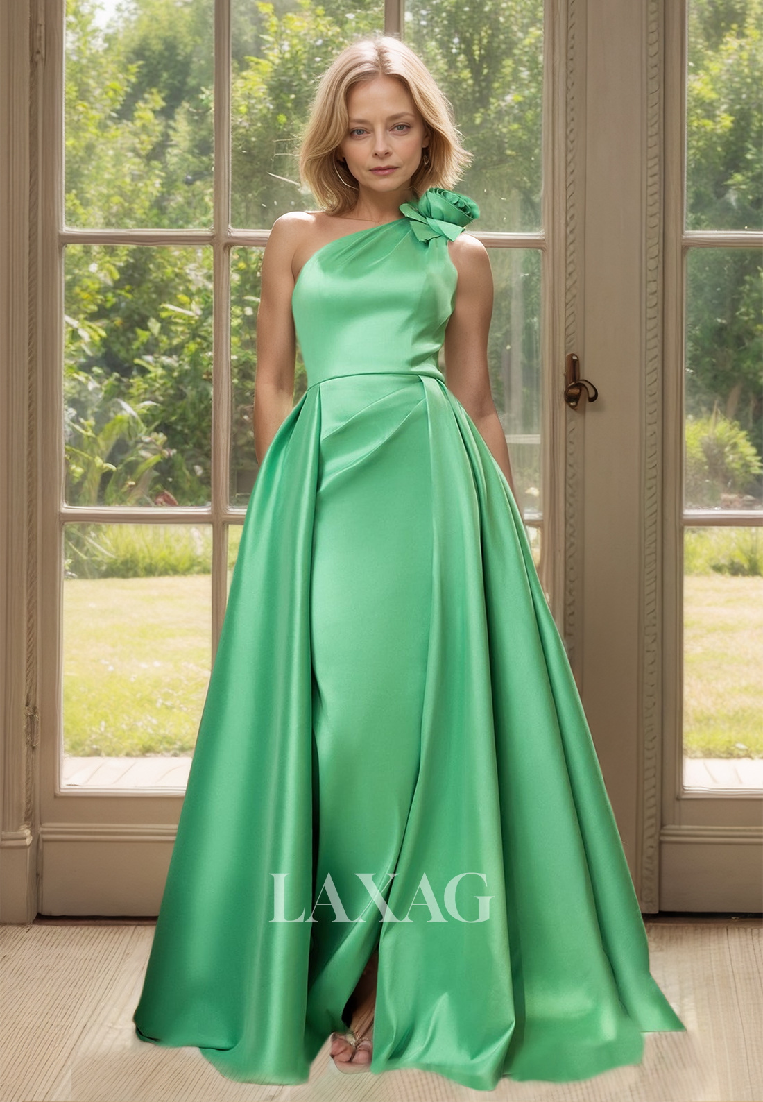 Asymmetrical One-Strap Sleeveless Mother of the Bride Dress Floral Embellished Cocktail Gowns with Overskirt