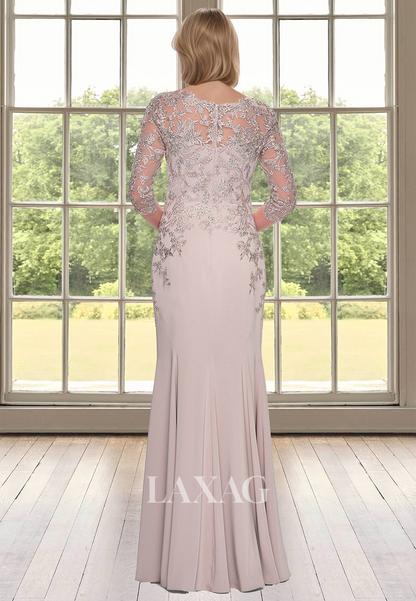 Half-Sleeves V-Neck Chiffon Cocktail Gowns Lace Applique Mearmaid Mother of the Bride Dress