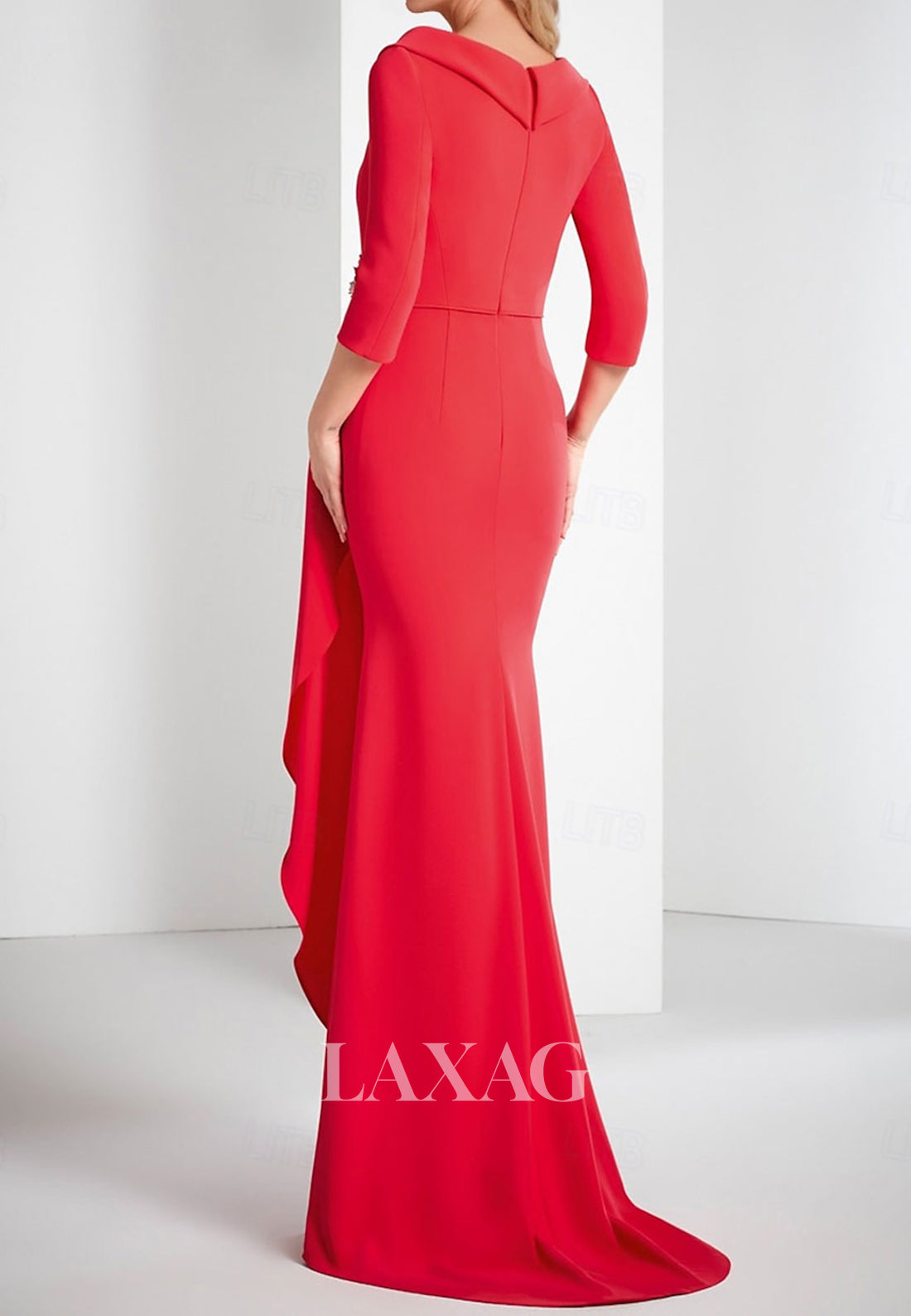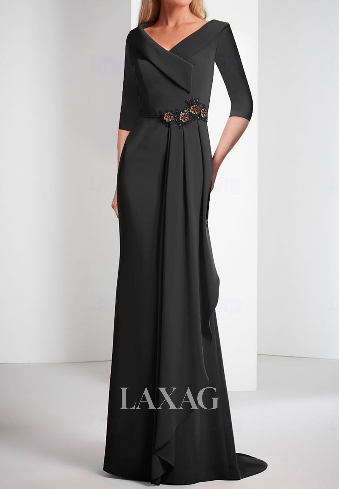 Make a statement at any event with this stunning V-neck satin gown. The half-sleeves and pleated design add a touch of elegance, while the beaded rhinestone details give it a subtle sparkle. The fitted silhouette flatters your figure, and the sweep train adds a touch of drama. Perfect for weddings and parties.