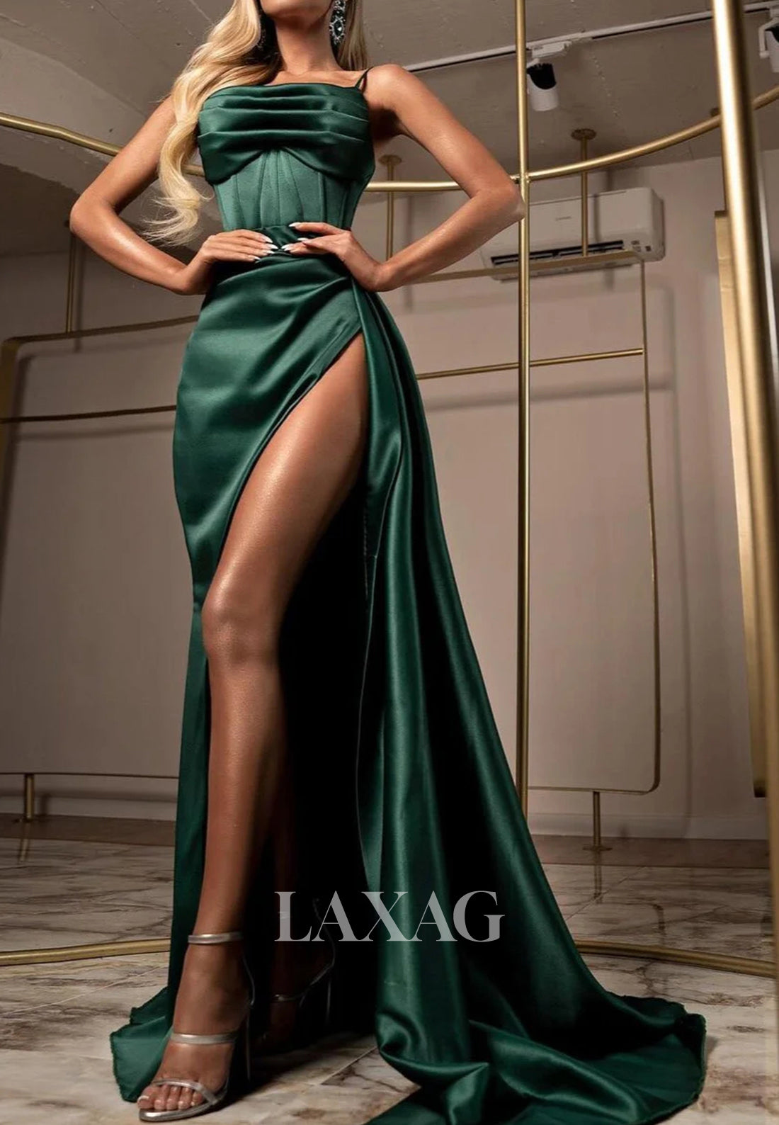 Tube Top Spaghetti Straps Sleeveless Mermaid Prom Dress Off-Shoulder Pleated High Slit Formal Gowns