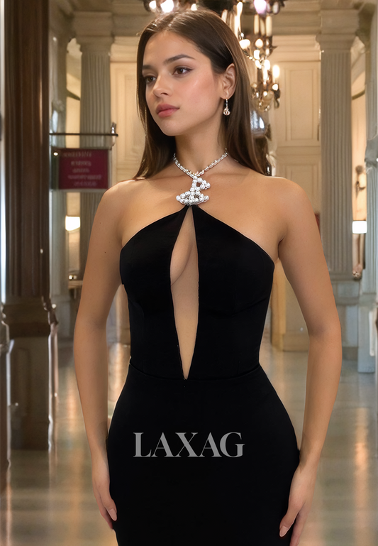 Halter-Neck Sleeveless Pearls Sexy Formal Prom Dress Cutout Floor-Length Mermaid Party Gowns