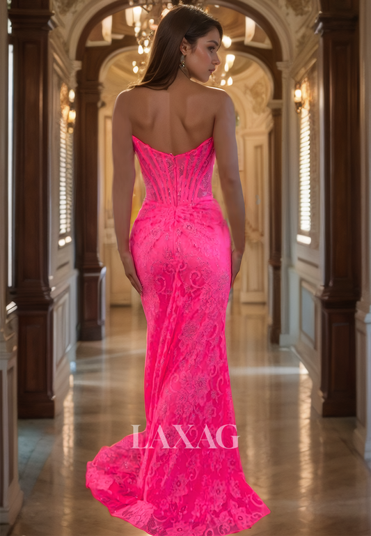 Strapless Sweetheart Sleeveless Mermaid Prom Dress Allover Lace Applique Cutout Party Gowns