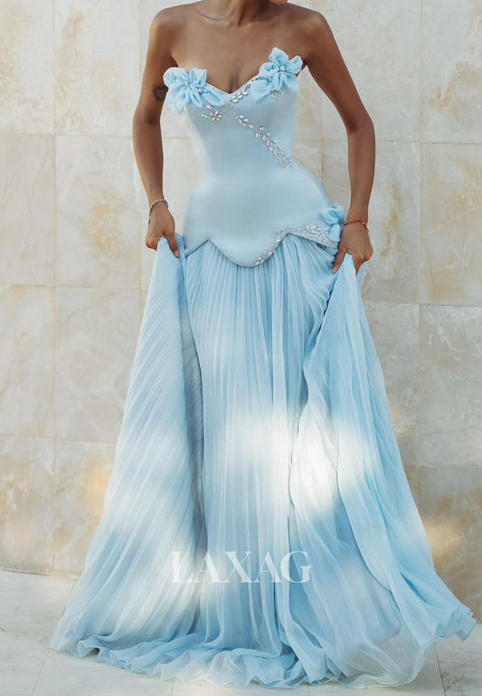 Sweetheart Off-Shoulder A-Line Evening Dress Sleeveless Beaded Sequined Pleated Tulle Formal Gowns