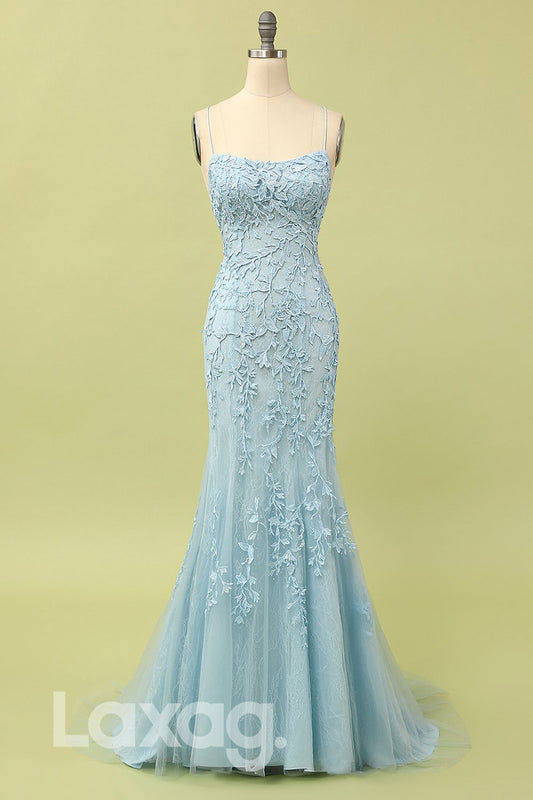 18766 - Women's Scoop Lace Applique Sheath Prom Dress