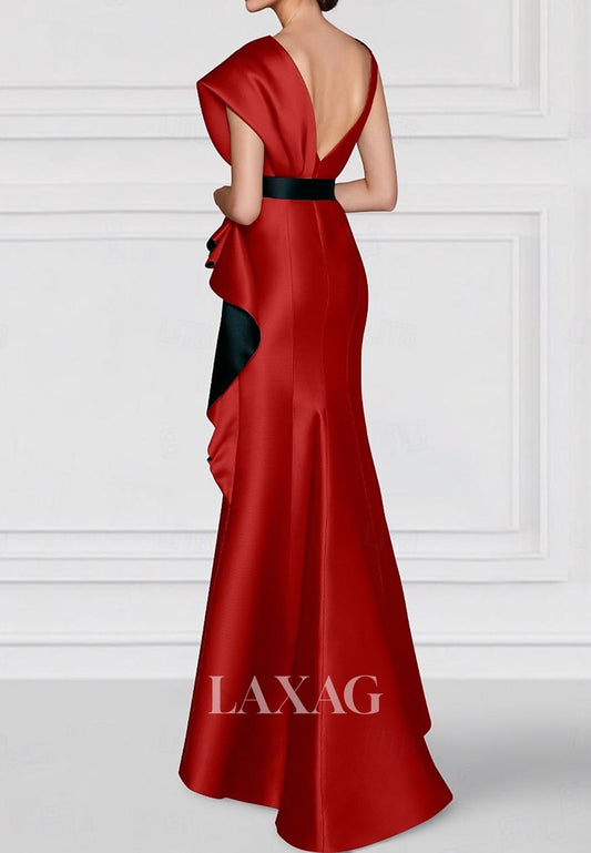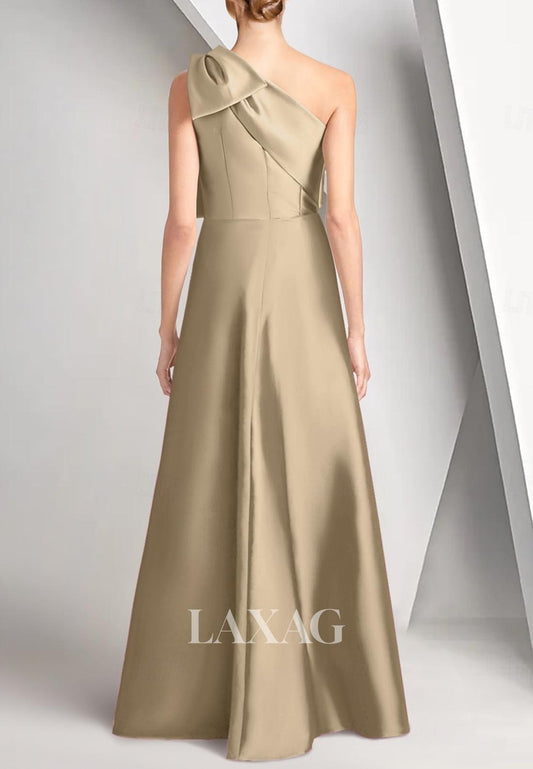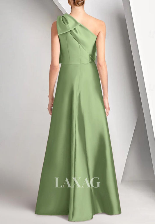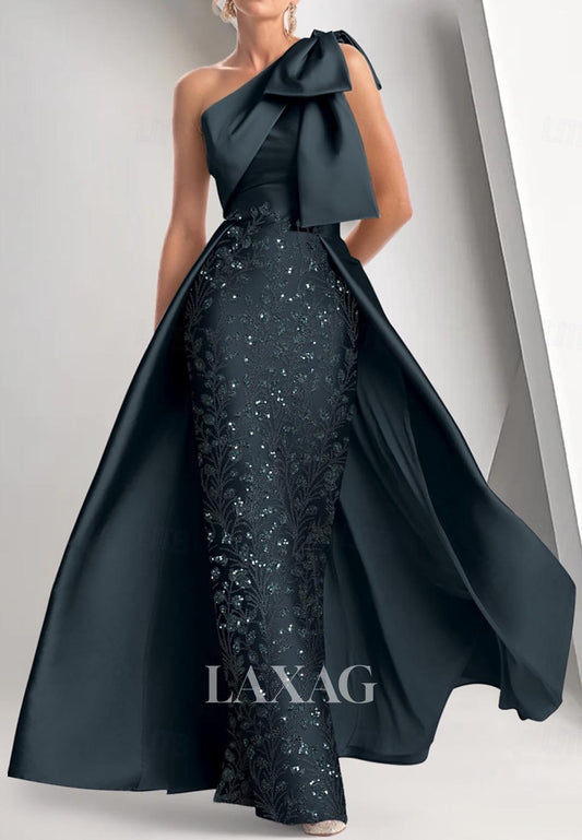 Asymmetrical-Neck Sleeveless Mermaid Evening Dress One-Shoulder Satin Formal Gowns with Bow