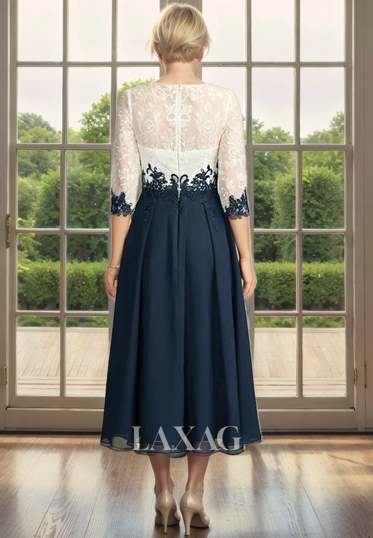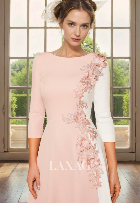 A-Line Bateau Quarter Sleeves Lace Appliques Mother of the Bride Dress