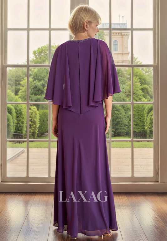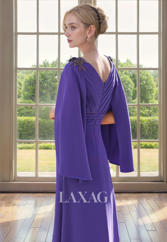 A-Line V-Neck Sleeves Beaded Elegant Mother of the Bride Dress