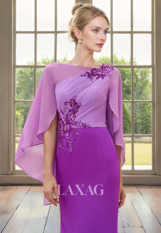 Bateau Sleeves Lace Appliques Beaded Elegant Mother of the Bride Dress