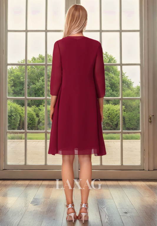 V-Neck Quarter Sleeves Lace Appliques Tiered Knee-Lengrh Mother of the Bride Dress