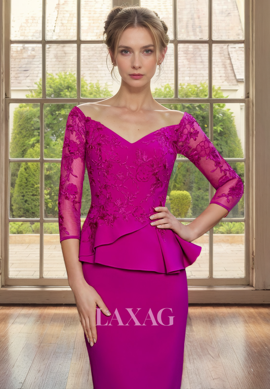 Two-Piece Suit V-Neck Quarter Sleeves Lace Mother Of the Bride Dress