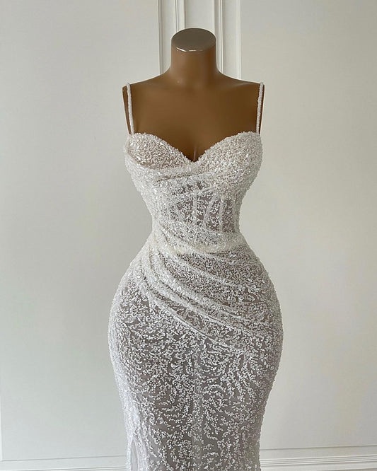 18723 - Women's Spaghetti Straps Sequins Sparkly Prom Dress with Slit