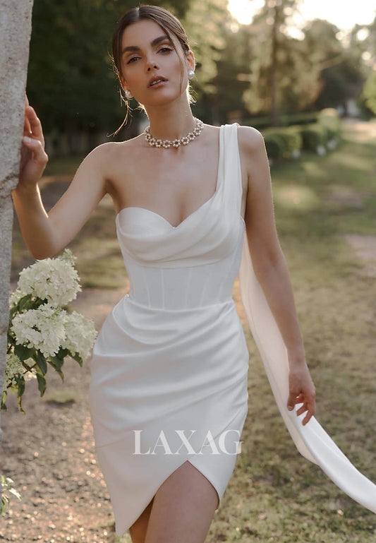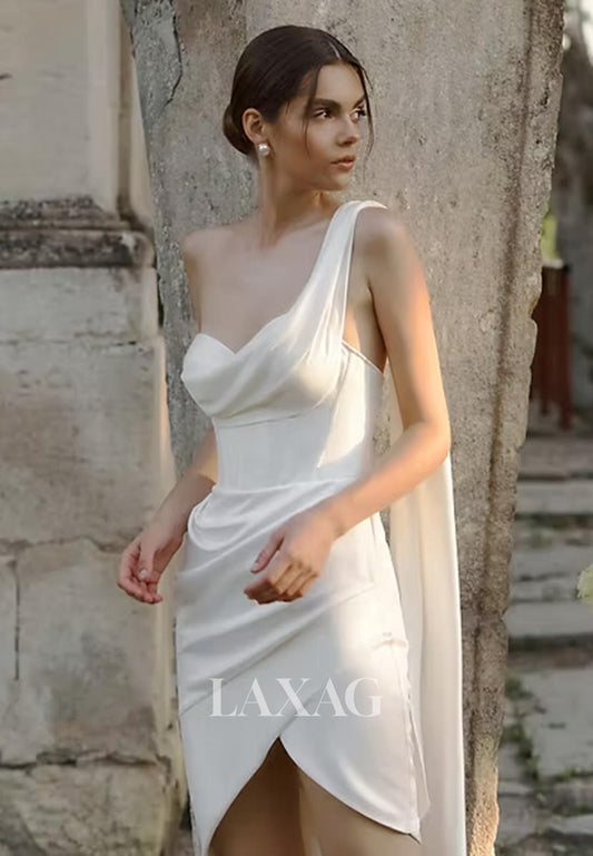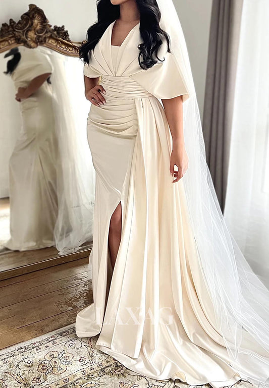Asymmetrical-Neck Sleeveless Pleated Off-Shoulder High Slit Chiffon Mermaid Wedding Dress