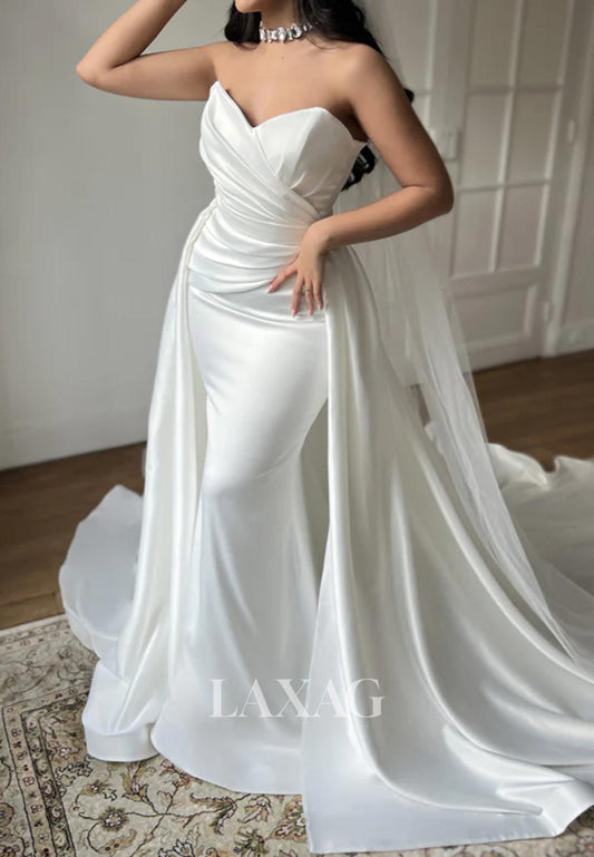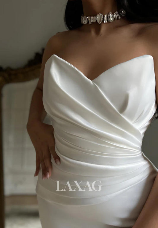 Strapless Draped Sleek Satin Elegant Mermaid Wedding Dress Tube Top Sleeveless Bride Gowns with High Slit