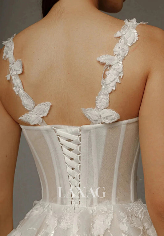 Sweetheart Spaghetti Straps Sleeveless Floral Embellished Short A-line Boho Wedding Dress