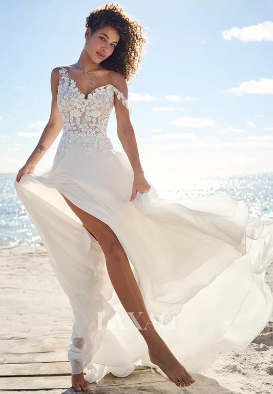 Sweetheart Off-Shoulder Sleeveless Bride Gowns Beaded Floral Embellished A-Line Wedding Dress