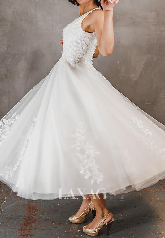 Allover Lace Applique Bride Gowns High-Neck Sleeveless A-Line Wedding Dress with Overlay