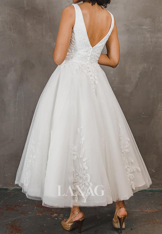 V-Neck Sleeveless Applique Pleated Bride Gowns Off-Shoulder Tulle A-Line Wedding Dress with Bows