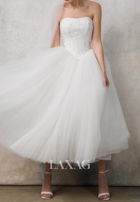 Tube Top Off-Shoulder Sleeveless Satin Bride Gowns Pleated Trousers Wedding Dress with Tulle Overskirt