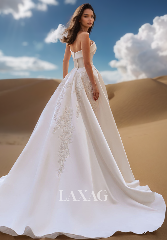 Sweetheart Sleeveless Applique A-Line Bride Dress Off-Shoulder Cutout Train Wedding Dress