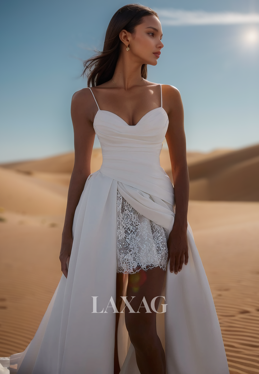 Square-Neck Sleeveless Short A-Line Beach Bride Dress Spaghetti Straps Lace Applique Boho Wedding Dress