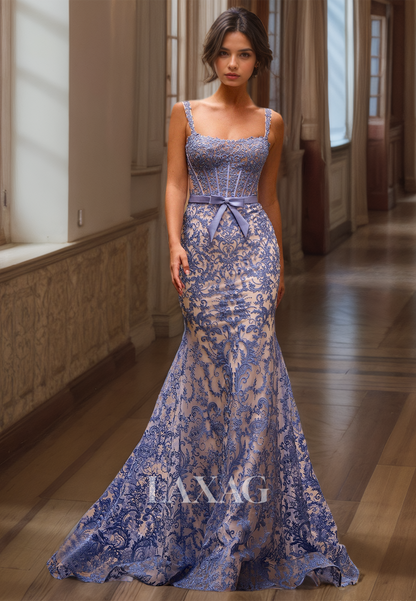 This elegant Spaghetti Straps Sleeveless Lace Applique Mermaid Prom Dress features intricate beaded cutouts and a sweeping train for a glamorous look. The delicate lace applique adds a touch of femininity and sophistication. Perfect for any formal occasion, this dress will make you stand out in style.