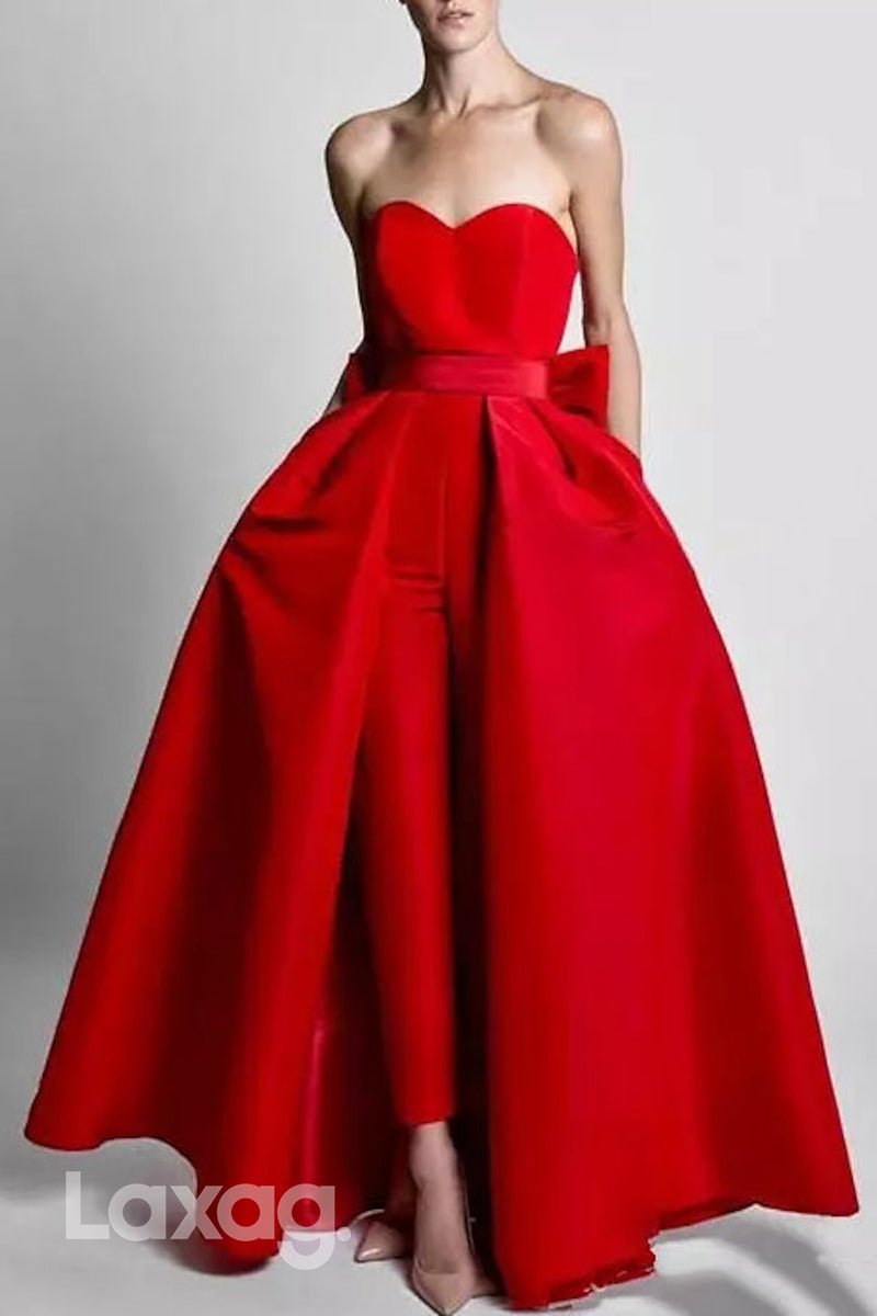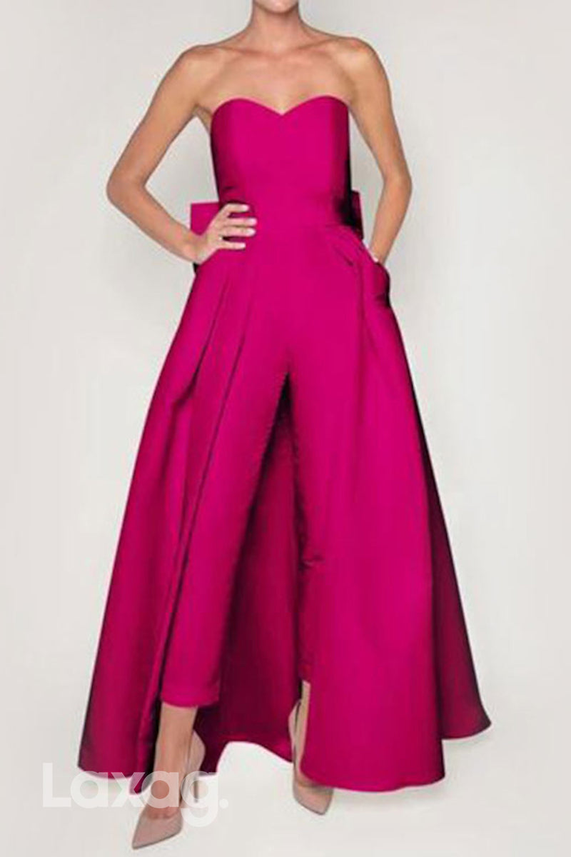 22508 - A-Line Strapless Detachable Sleek Satin Mother of the Bride Dress