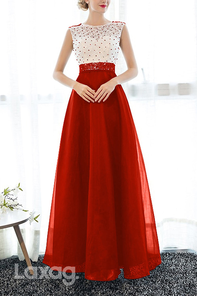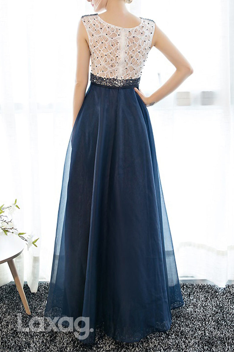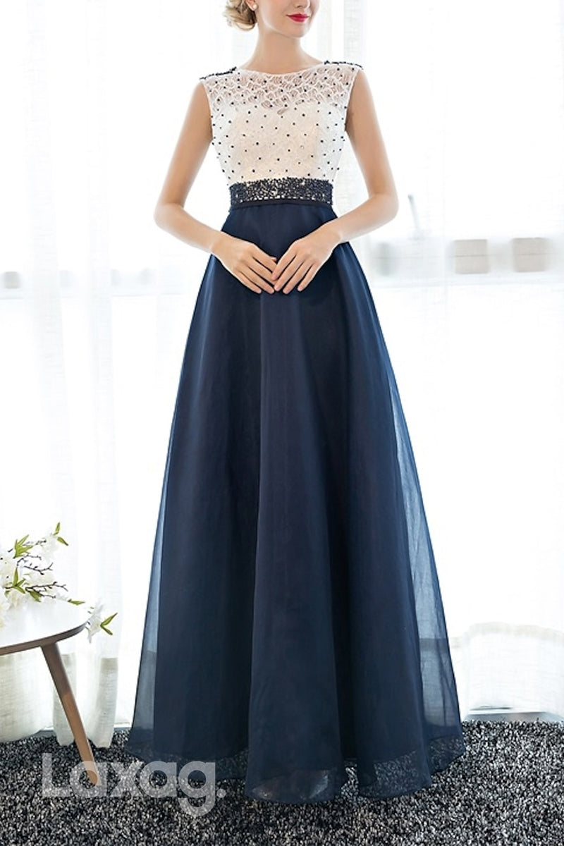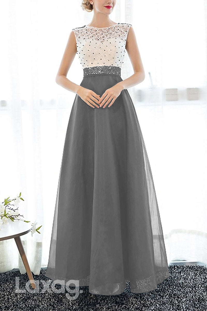 22515 - A-Line Round Beaded Appliques Tulle Mother of the Bride Dress