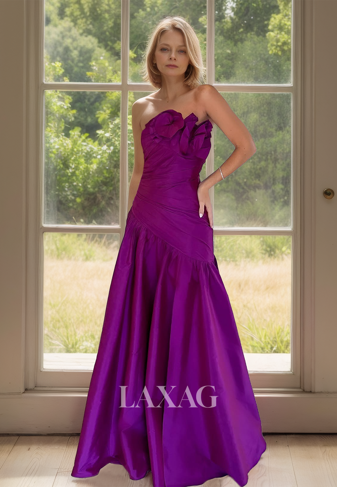 Asymmetrical Tube Top Sleeveless A-Line Mother of the Bride Dress Floral Embossed Pleated Cocktail Gowns