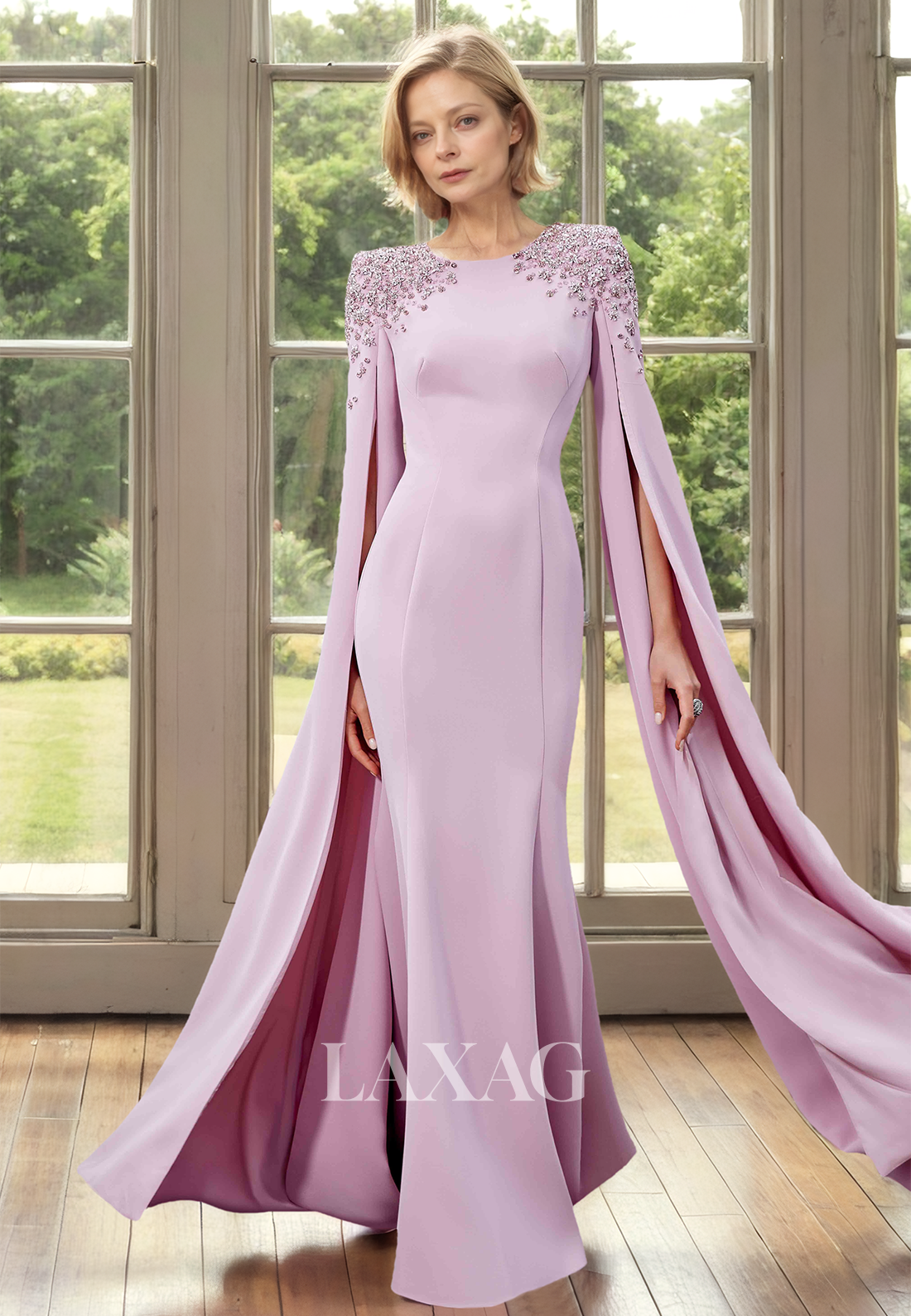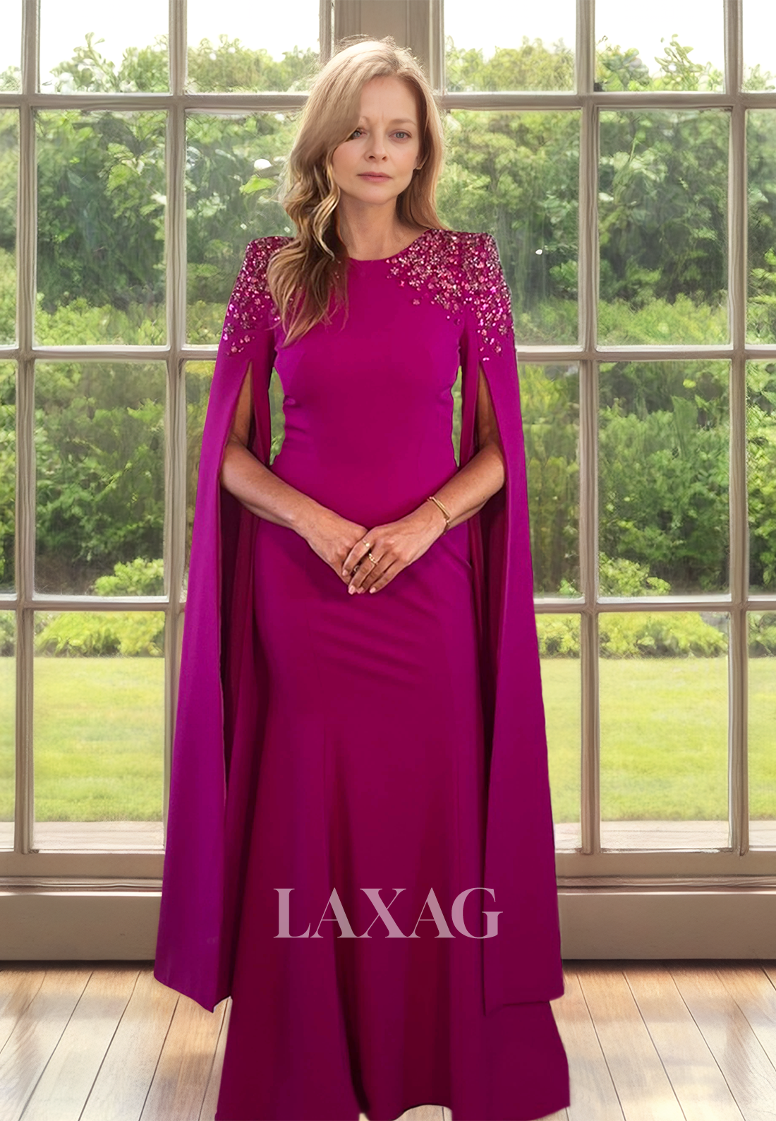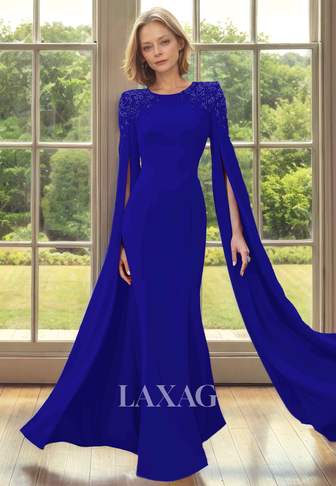 Scoop-Neck Floor-Length Mermaid Mother of the Bride Dress Beaded Sweep Train Cocktail Gowns