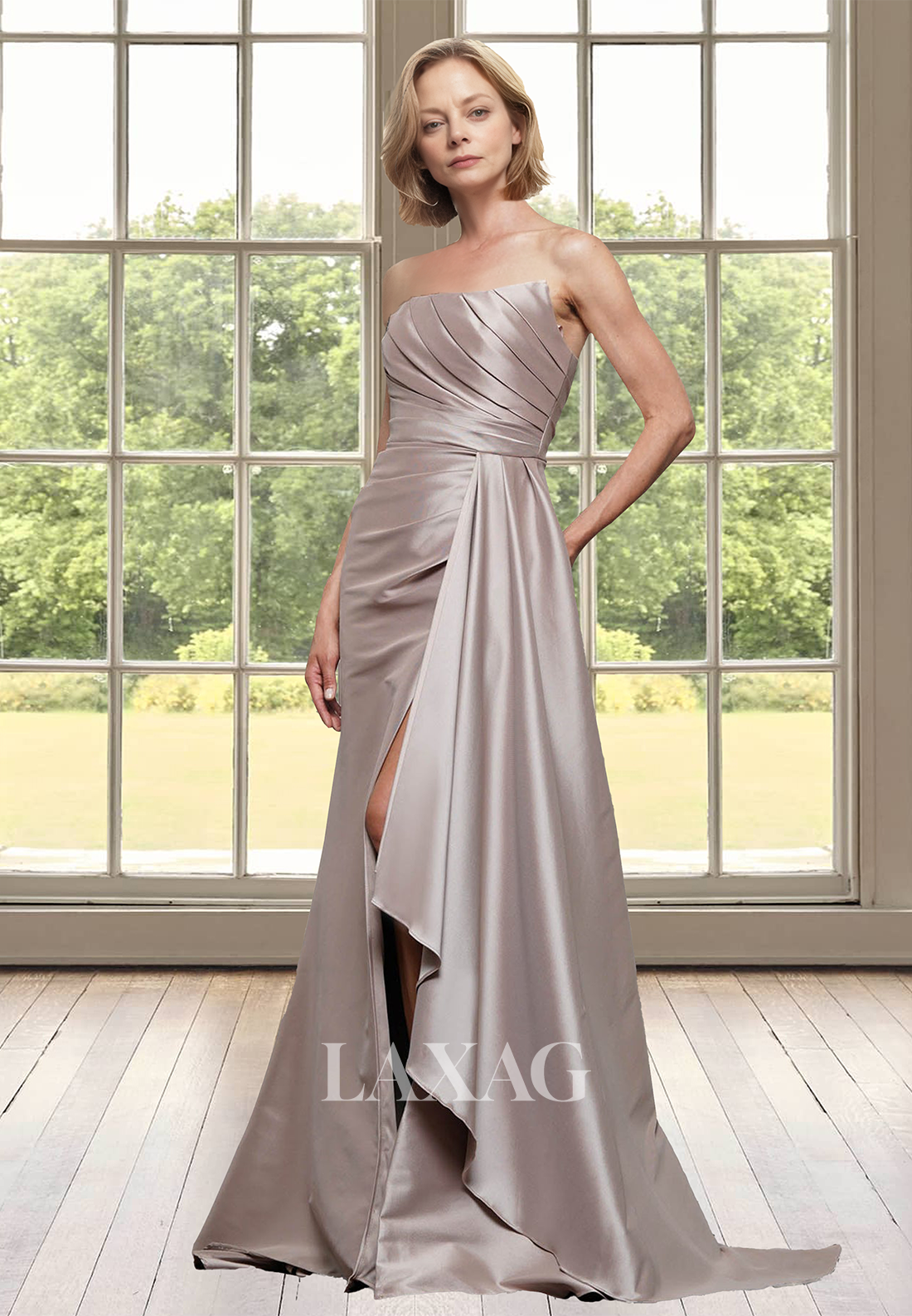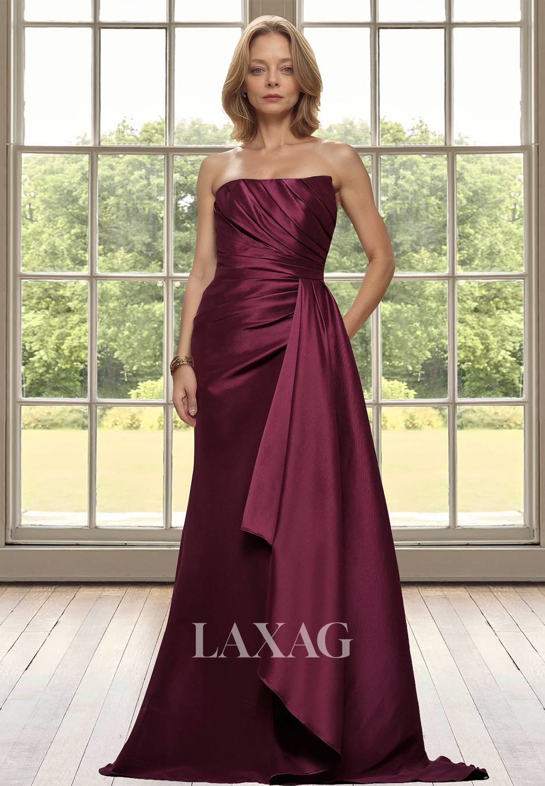 Tube Top Sleeveless Pleated Cocktail Gowns Off-Shoulder Satin Mermaid Mother of the Bride Dress