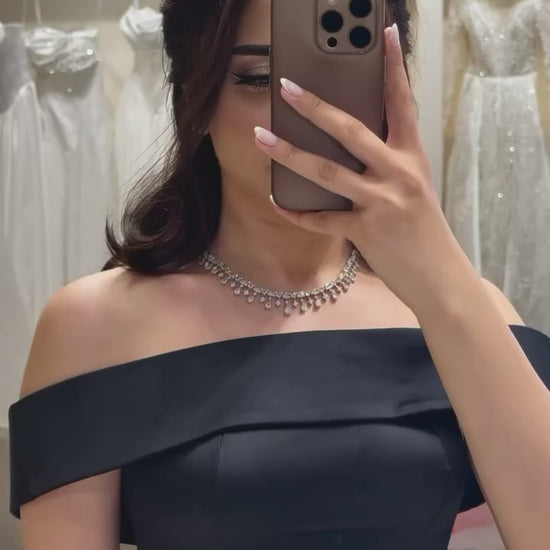 Make a stunning entrance in this sophisticated two-tone evening dress that seamlessly blends classic elegance with modern allure. The graceful bateau neckline transitions into an off-shoulder silhouette, creating a flattering frame for your shoulders and décolletage. Luxurious satin fabric drapes beautifully while delicate beading adds glamorous sparkle and dimension throughout. The sleeveless, fitted design accentuates your curves with refined polish, making this gown perfect for galas, weddings, and formal celebrations. Whether you're the guest of honor or turning heads on the dance floor, this versatile piece delivers timeless sophistication and undeniable presence.